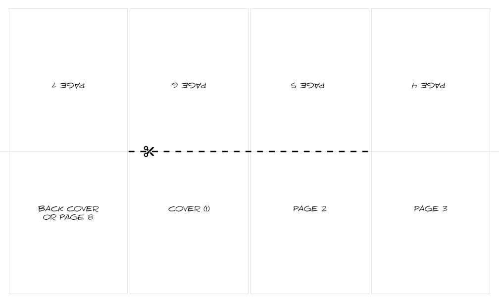 Check out https://lincodega.itch.io/8-16-page-zine-template for more resources on Zine making and printing.